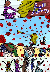 辺り一面を真っ赤に染めたのは鮮血、ではなくバラの花でした。 たくさんのきれいなバラを見て女王の機嫌も良くなり、 捕らえられていた人々も全員無事戻ってきました。 そんなこんなでとにもかくにも一件落着めでたしめでたし(*´▽`*) これにてステージマジックを終了いたします。 少しでも不思議な世界をお楽しみいただければ幸いです。 連続投下にご協力ありがとうございました。 皆様、ご観覧ありがとうございました! 木戸ひまり(3A)@ままこ |